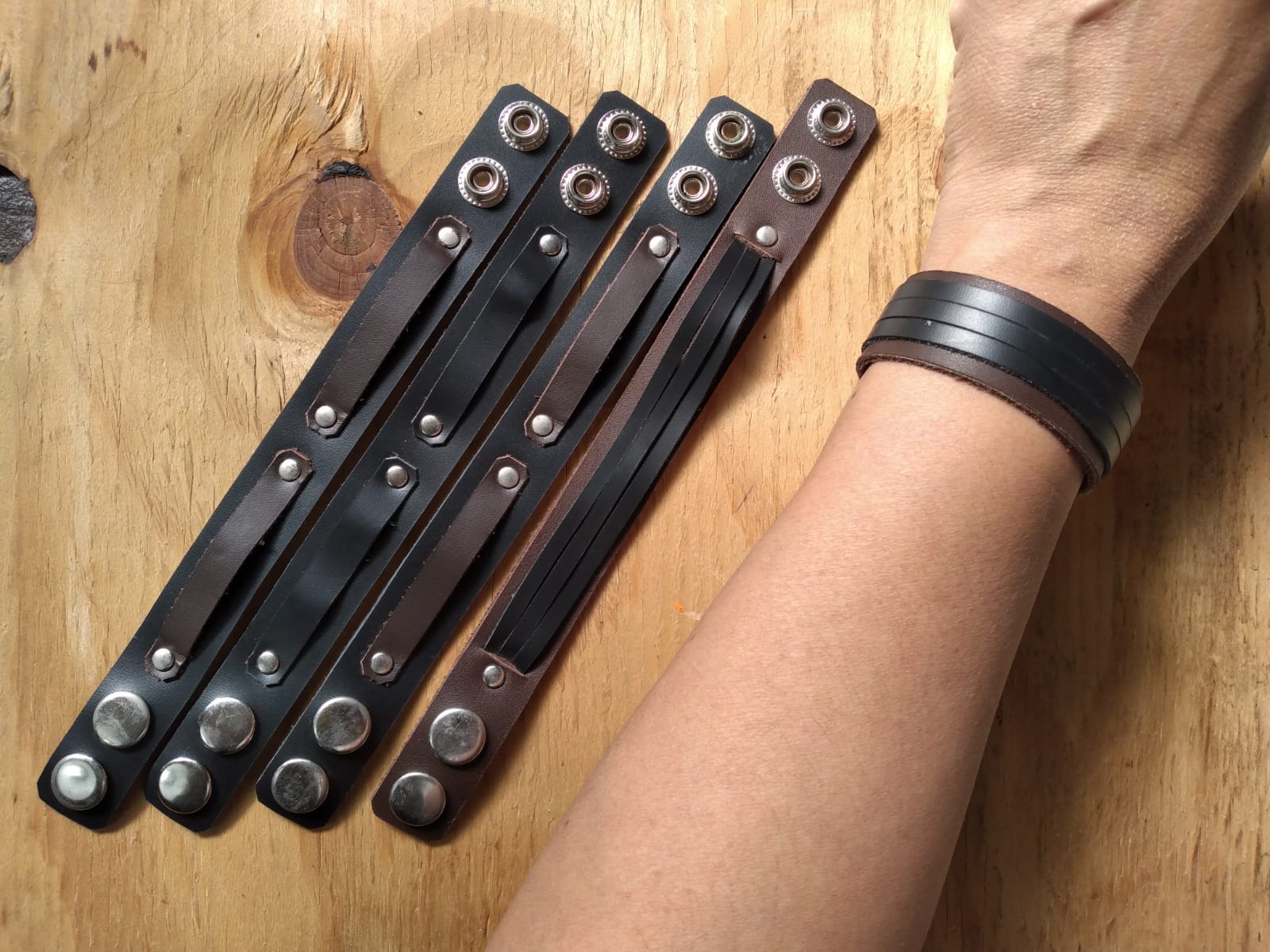 Pulseras de cuero elaboradas a mano, con cierre de broche metálico